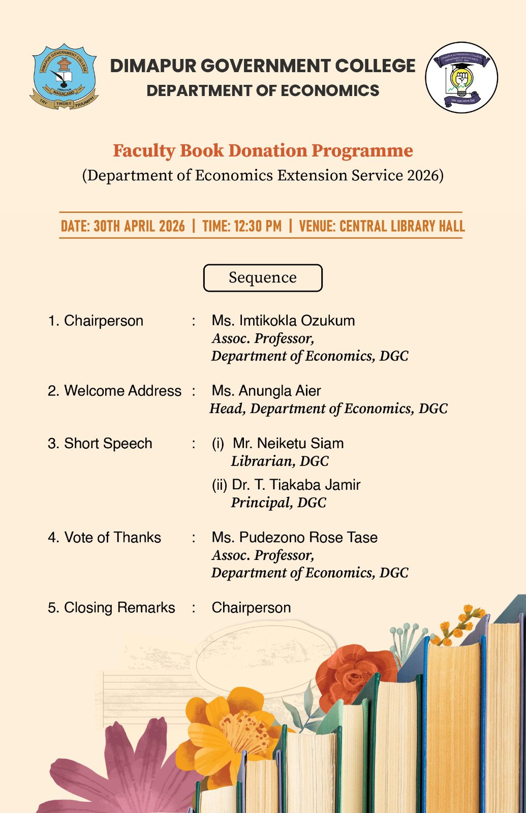 Dimapur Government College was started at the initiative of some prominent citizens of the town to provide an opportunity for higher studies to those who could not afford to go outside Dimapur/Nagaland.