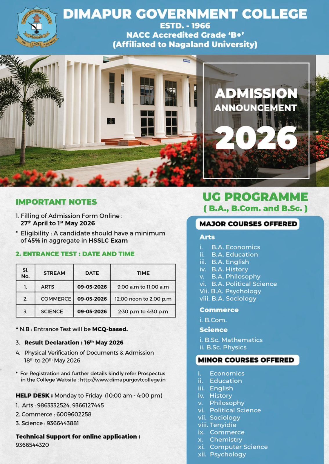 Sociology, History, Psychology, Political Science, English, Philosophy, Education, Tenyidie, Economics